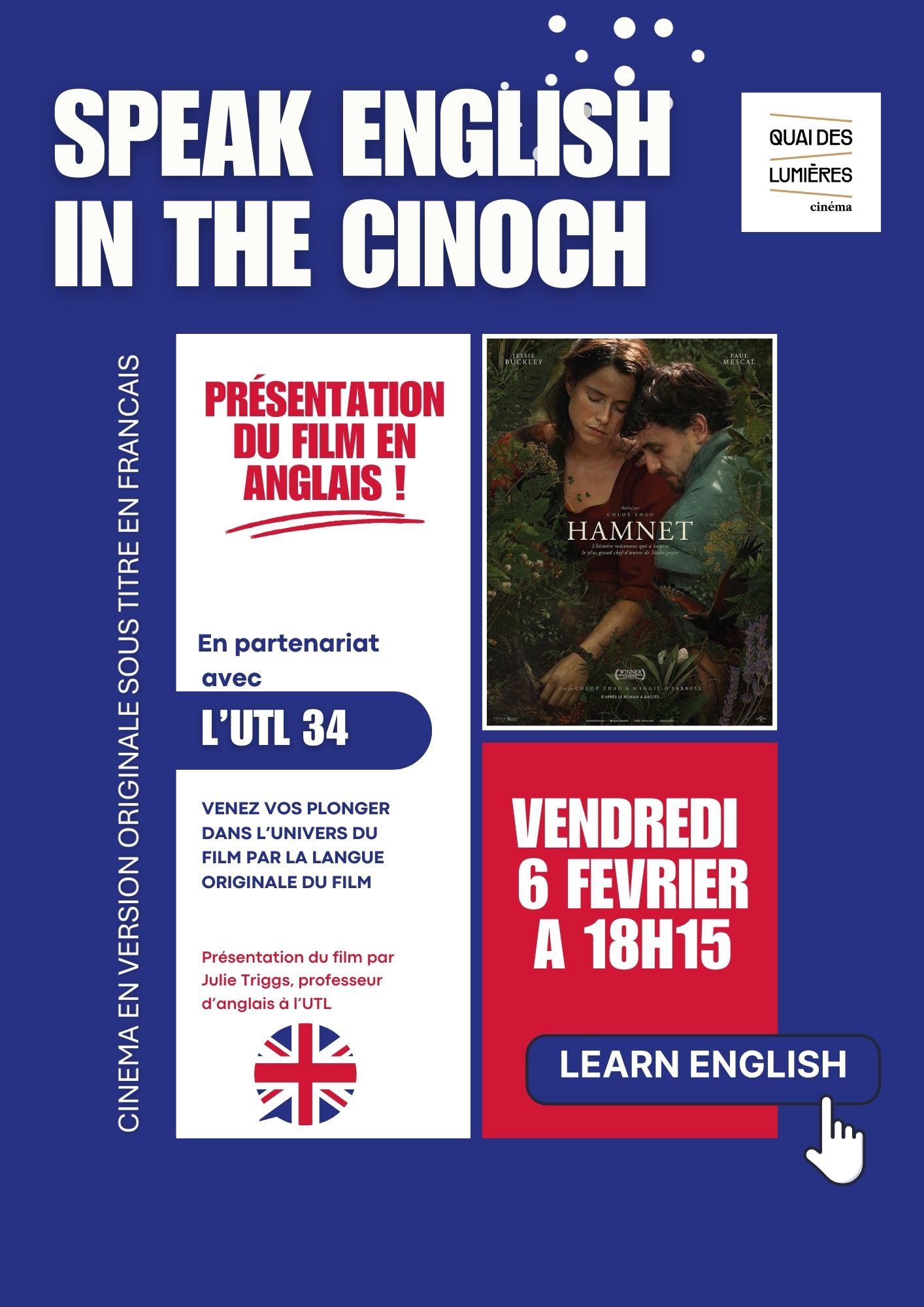 6 février Partenariat avec le cinéma « Quai des lumières » : « Hamnet » le vendredi 6 février à 18h15, séance en anglais présentée en anglais par Julie Triggs professeure d’anglais de l’UTL34, film en version originale et sous-titré en français