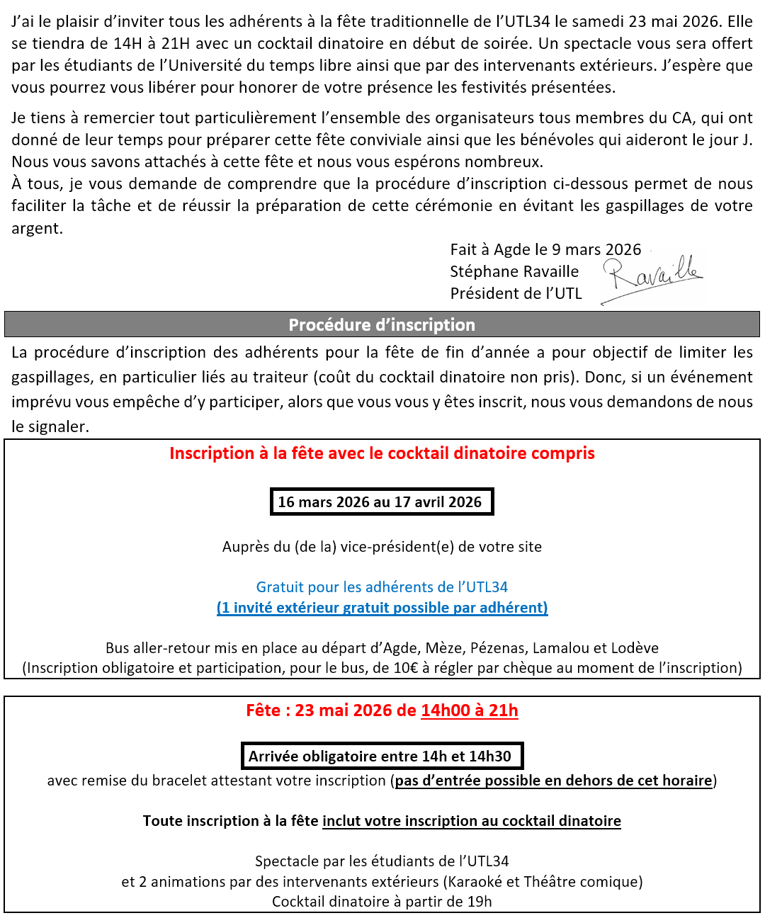 2 et 3 avril Annulation des cours : en raison de la fête des traditions maritimes « Escale à Sète » et des difficultés de circulation, les cours du jeudi 2 avril et vendredi 3 avril sont annulés sur le site de Sète