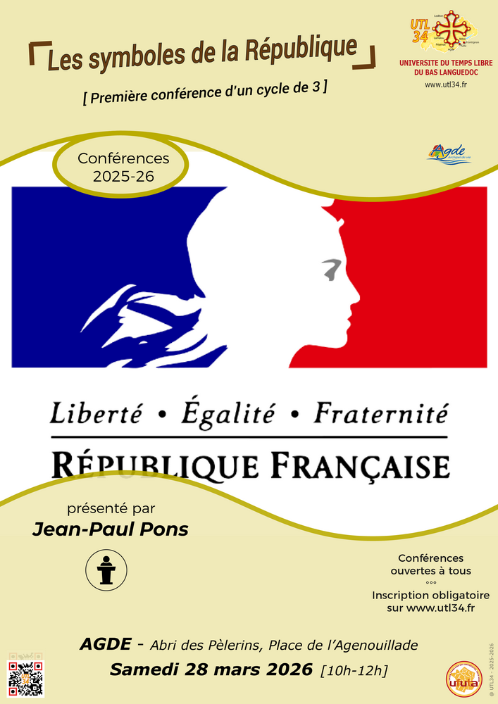 | samedi 28 mars 2026 | Les symboles de la république | Jean-Paul PONS | AGDE | Abri des pélerins | 10h-12h | |